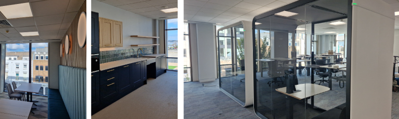 - Reconfigured open-plan and cellular layouts requiring M&E modifications.